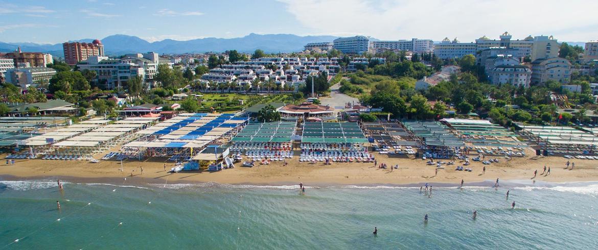 The hotel is ideally located in Side, 200 m from the sandy beach. The resort of Kumköy is about 500 m away, and the tourist centre of Manavgat can be reached in around 10 minutes by car. Antalya Airport is 55 km from the hotel.