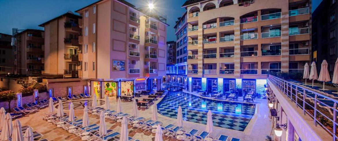Локација: Xотелот се наоѓа на само 1 км од центарот на Аланија, а аеродромот во Анталија е оддалечен 120 км. Хотелот е отворен во 2008 година, а реновиран во 2012 и 2018 година и делумно (лоби, ресторан) во 2020 година. Зафаќа површина од 7.000 m² и се состои од 7 меѓусебно поврзани блокови.